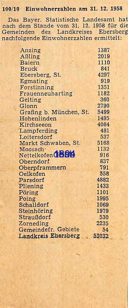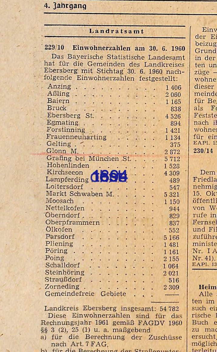 Glonn EW Statistisches Landesamt 1934