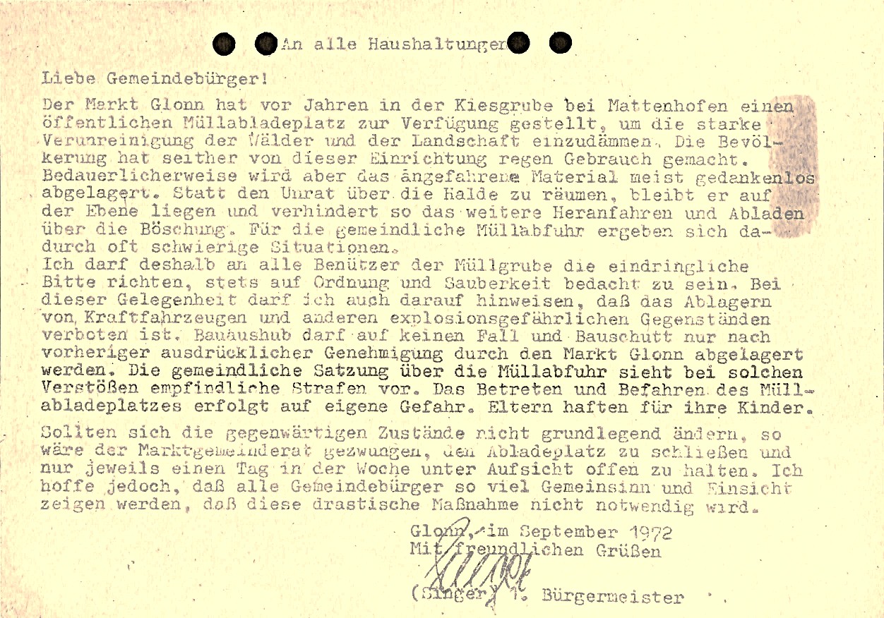 Kurze Chronologie der Glonner Geschichte