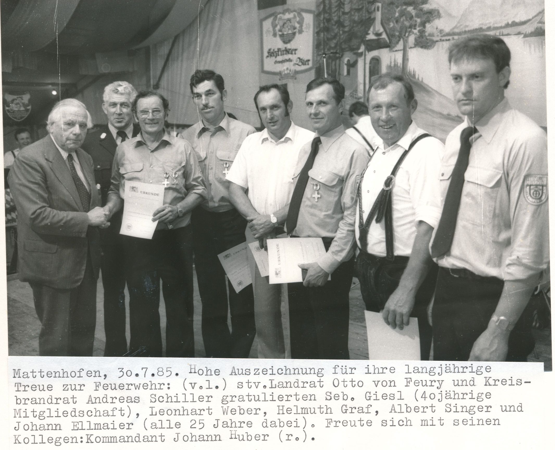 BChr 1985-38 Ehrung Feuerwehr Mattenhofen