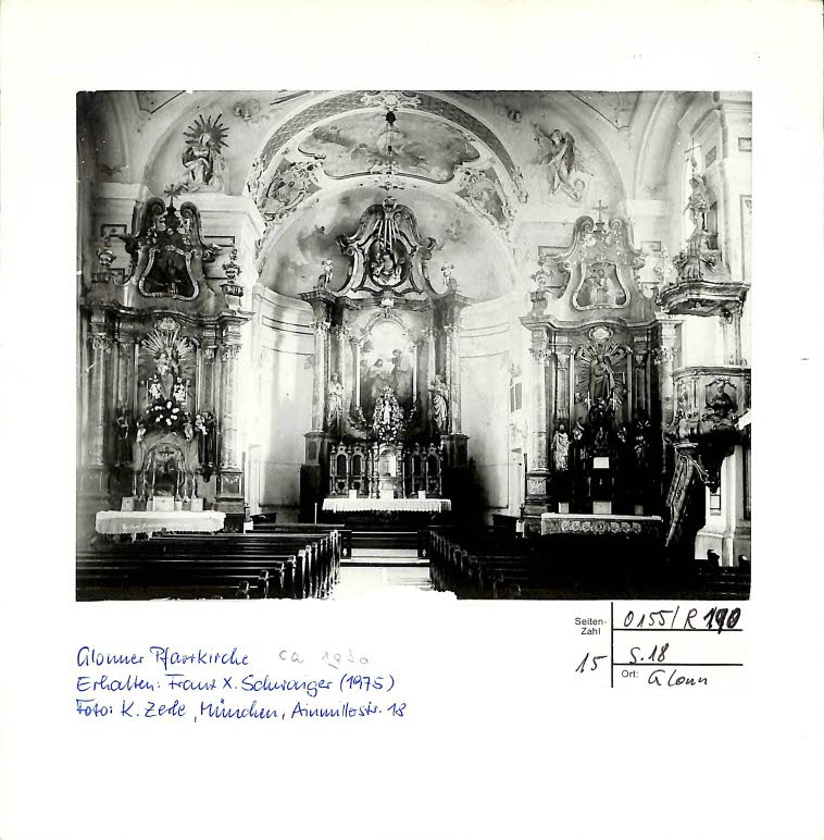 Innenraum der Glonner Pfarrkirche um 1930