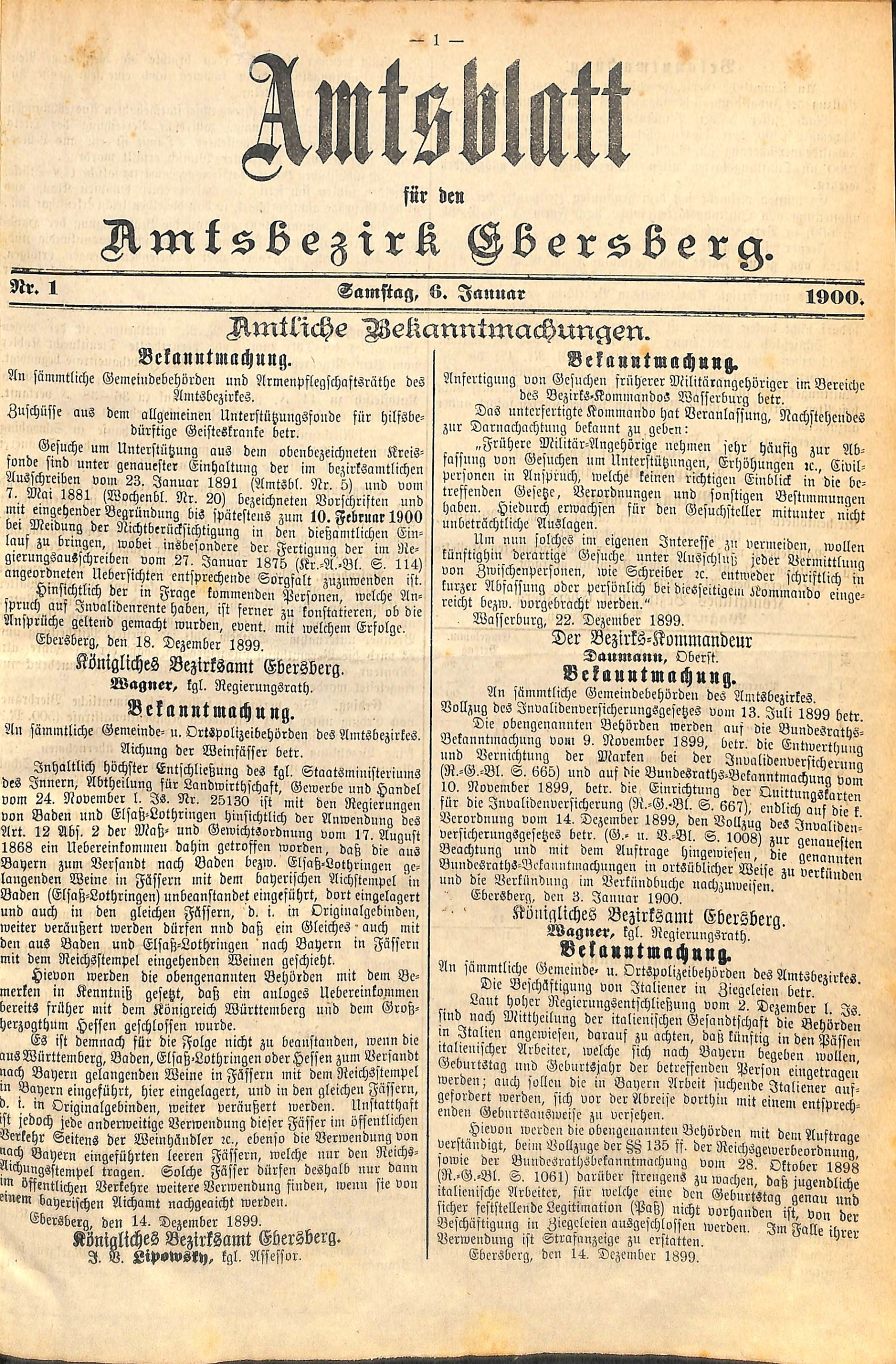 Titelseite Ebersberger Amtsblatt 1900